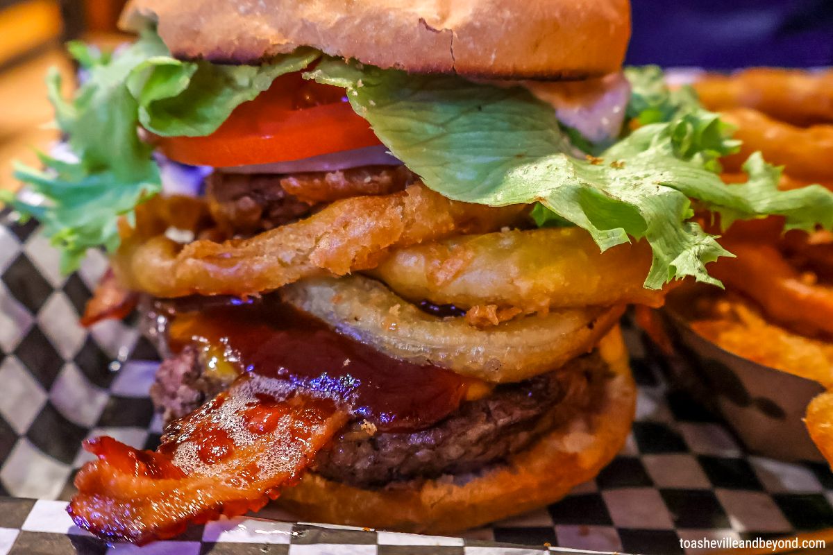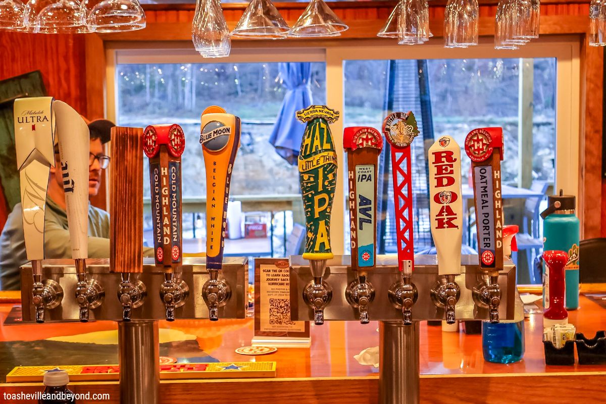 We recently made the drive out to Chimney Rock and were thrilled to grab a couple of burgers and brews while soaking in the local revival spirit. The restaurant offers indoor seating, bar service, and a back patio that normally overlooks the river — though river access remains under repair as the broader recovery continues.