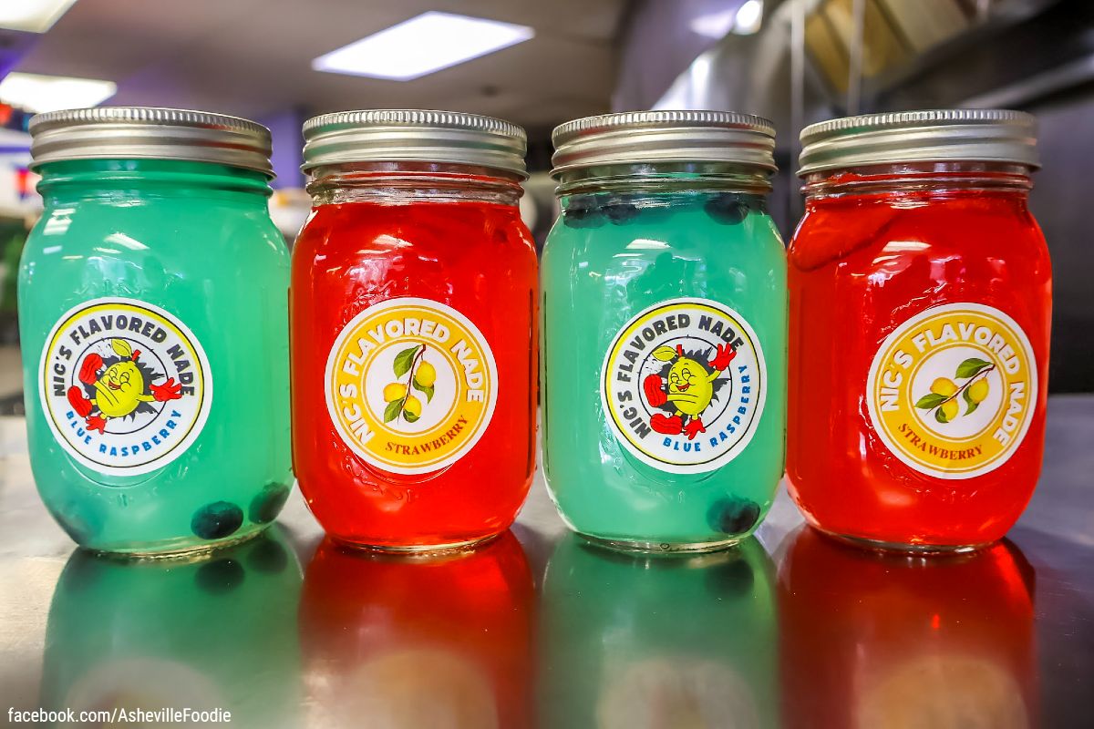 We thought some folks were sipping on moonshine in the mason jars — turns out it was Nic’s Flavored Nade, an in‑house creation in Strawberry and Blue Raspberry that definitely doubles as a killer mixer — especially if you do want to add some shine later!