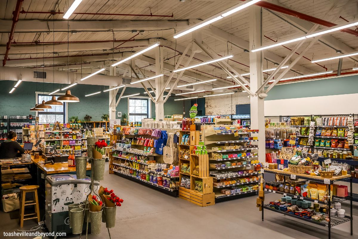 While their café serves up rich espresso, breakfast sandwiches, pastries, and other homemade delights, the market side is just as exciting. This charming mini-grocery carries local produce, artisan foods, pantry staples, fresh breads, and everyday essentials—with many of the items sourced directly from Western North Carolina farms and makers. It’s the kind of place you stop for a coffee and end up leaving with a locally made hot sauce, a fresh baguette, or a bouquet of mountain-grown flowers.